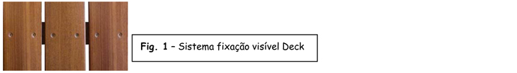 - Para utilização em tráfego intenso (espaços públicos, passadiços, etc.) só aconselhamos a aplicação de Deck com espessura mínima de 27 mm e sempre pelo sistema de fixação visível.